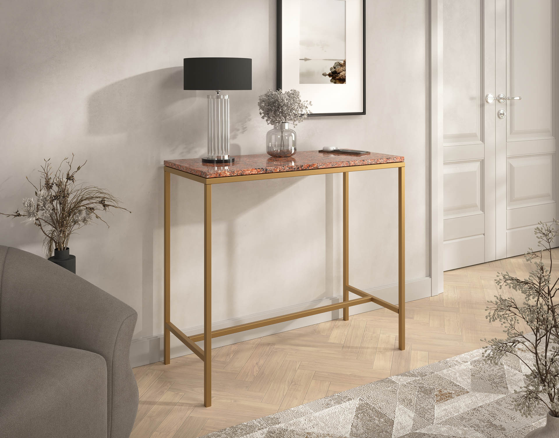 Bardzo klasyczna konsola. Idealnie nadająca się do łazienki, przedpokoju lub salonu. Ta konsola ma bardzo prosty i funkcjonalny design, łączący minimalistyczną formę z industrialnym akcentem.