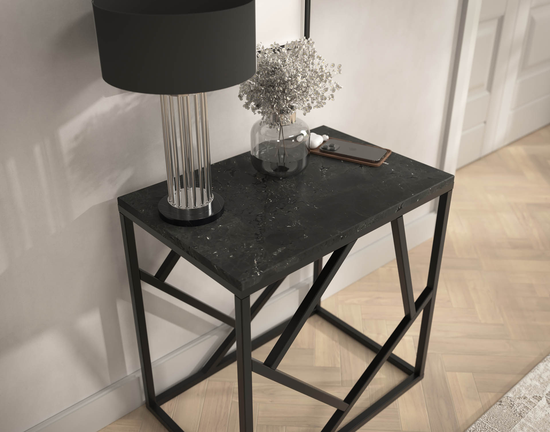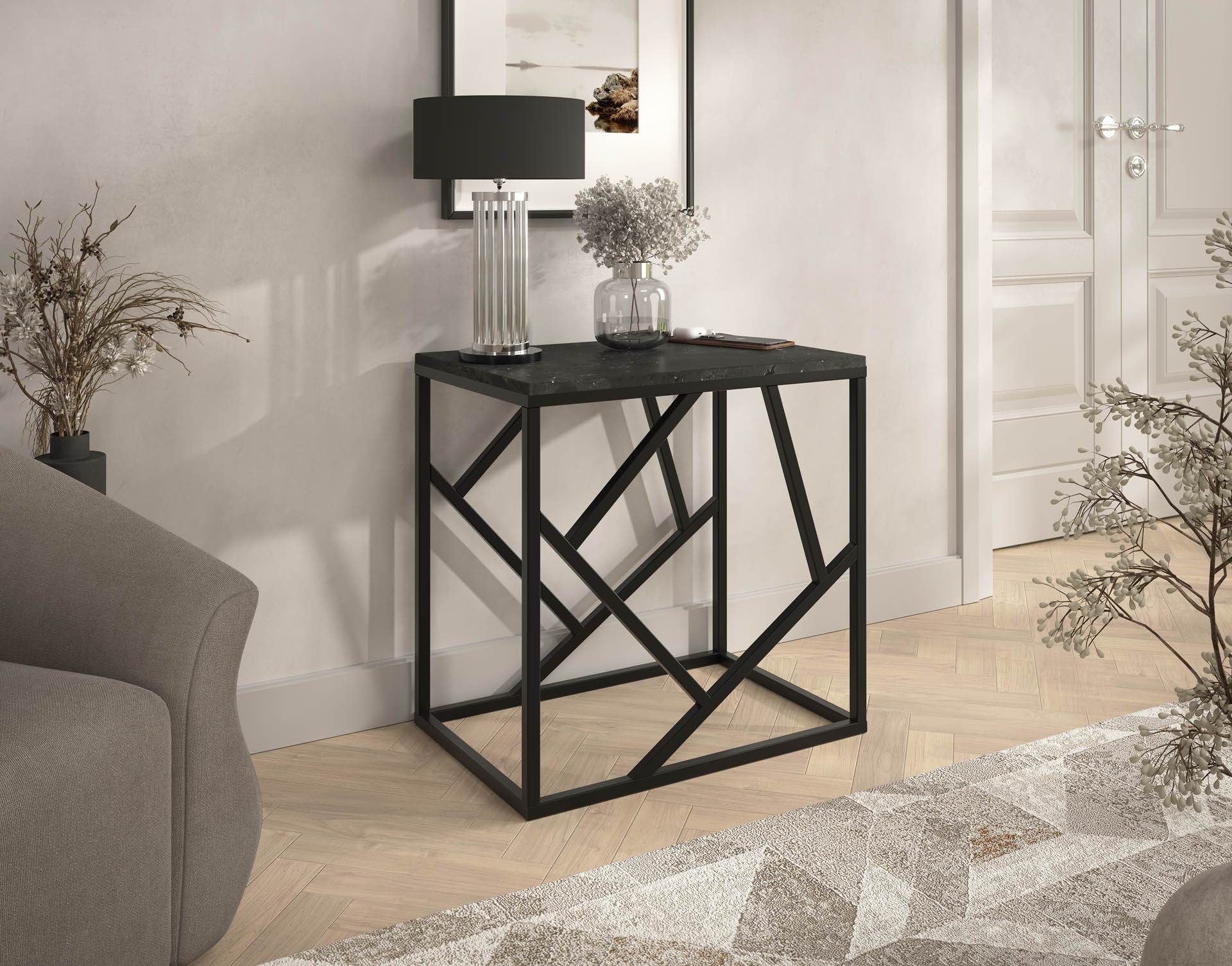 Konsola Pekin ma bardzo ciekawą, geometryczną i asymetryczną konstrukcję, która nadaje jej nowoczesny i artystyczny charakter. To w sumie bardzo prosta konstrukcja ale zastosowane w niej połączenia sprawiają, że upiększy każdy nowoczesny salon. Nietypowy układ linii i kształtów przyciąga uwagę i stanowi mocny element dekoracyjny. Industrialny styl - nowoczesna konsola.