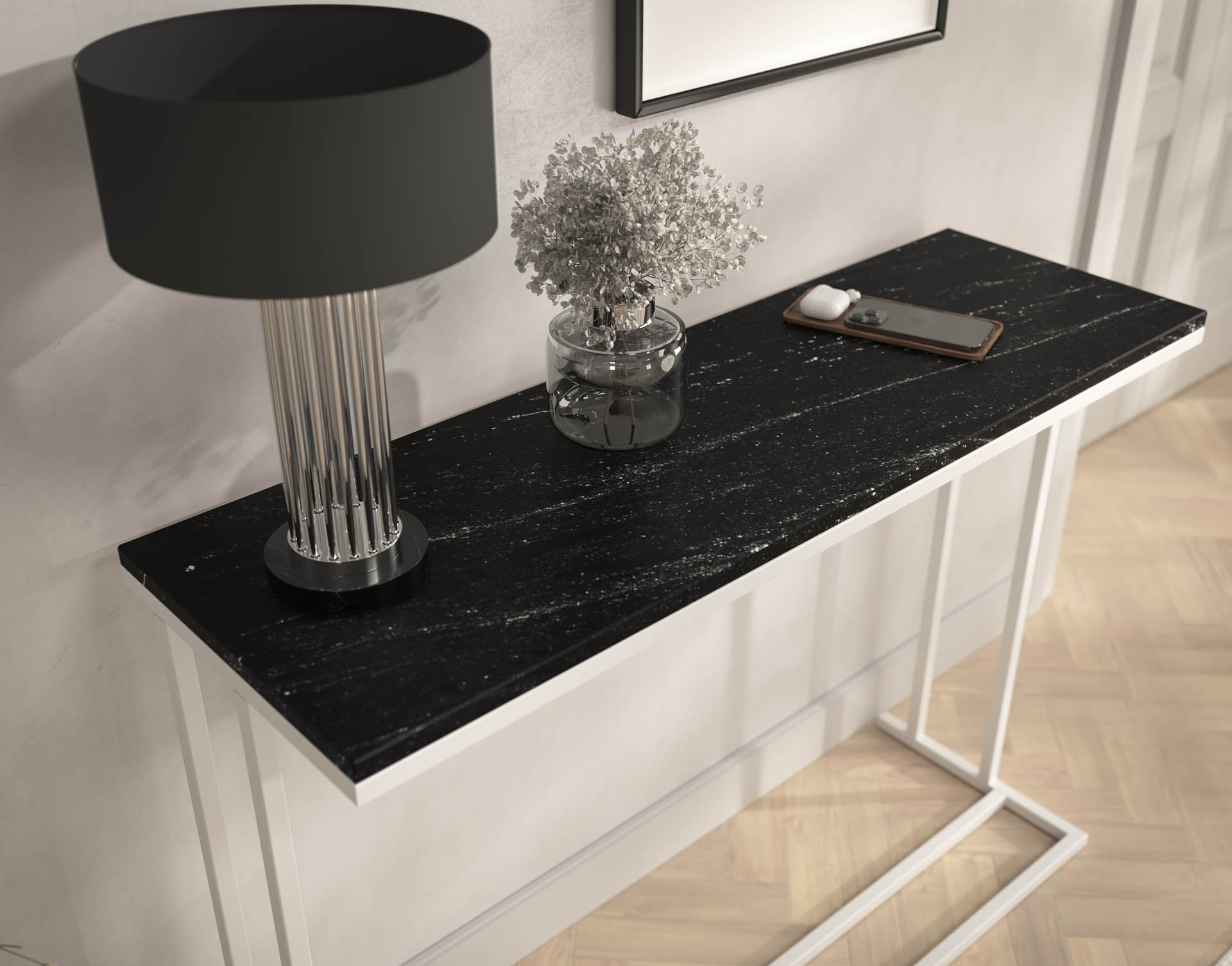 Ta konsola ma bardzo prostą, geometryczną formę — to klasyczny przykład minimalistycznego designu z lekką, otwartą konstrukcją. Nowoczesna konsola wykonana w stylu Skandynawskim. Idealna do minimalistycznych wnętrz.