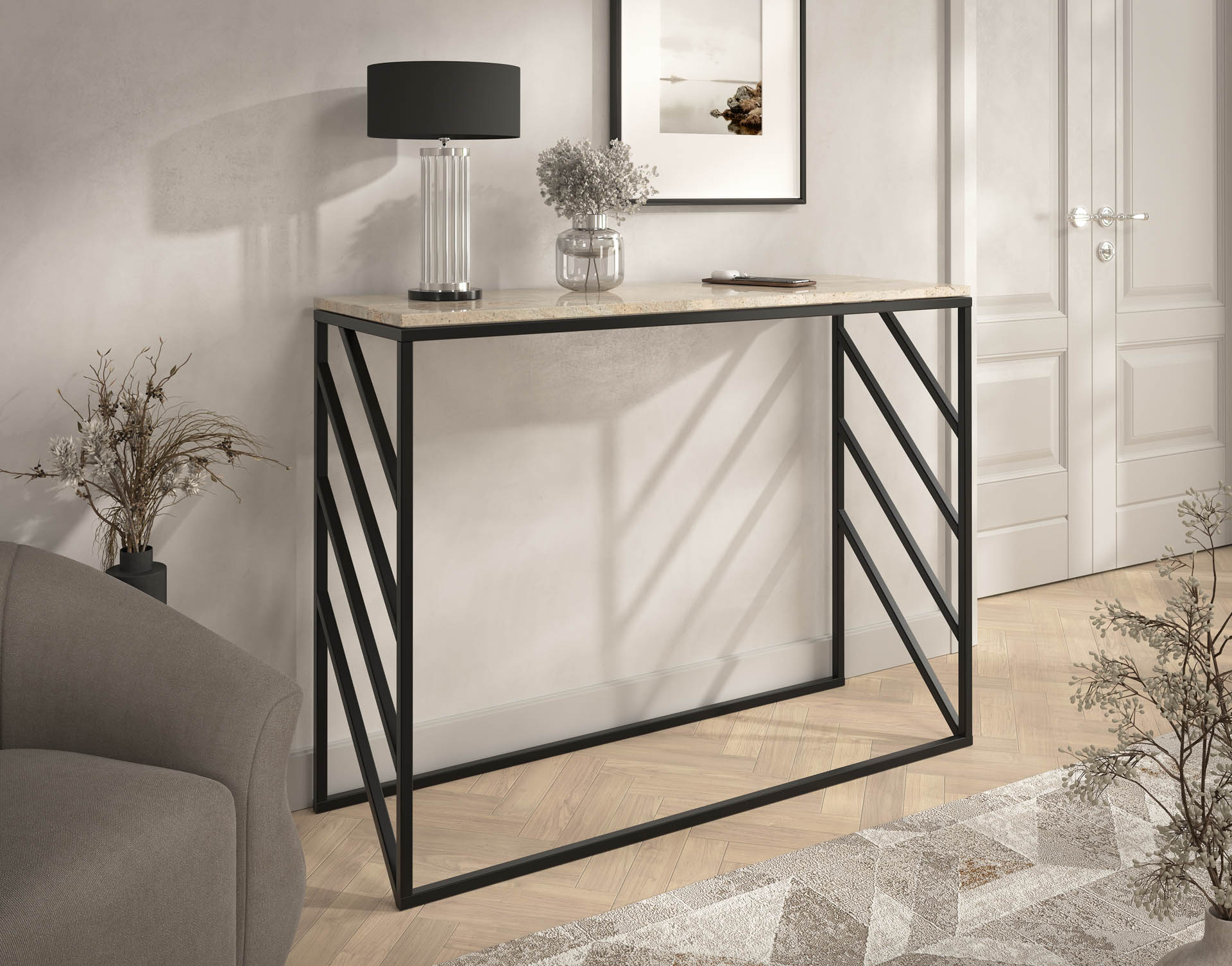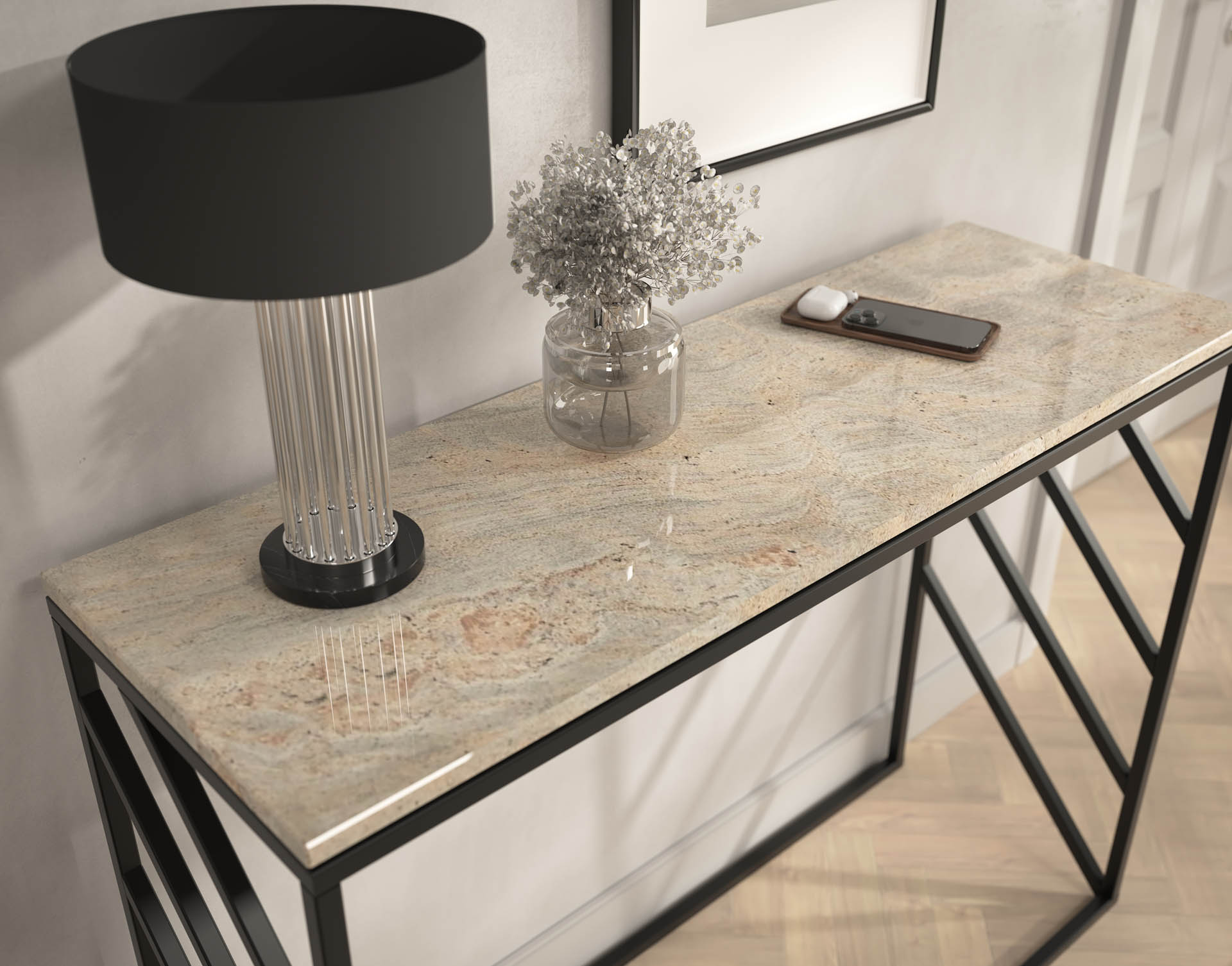 Konsola Vento to minimalistyczny i elegancki mebel, który doskonale sprawdzi się w przedpokoju, salonie czy biurze. Smukła, stalowa konstrukcja o geometrycznych liniach nadaje jej lekkości, a blat z naturalnym kamieniem wprowadza nutę luksusu i ponadczasowego stylu. Dzięki swojej formie konsola świetnie komponuje się z aranżacjami w stylu industrialnym, nowoczesnym i loftowym.