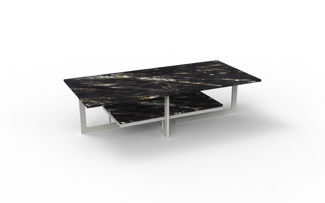 Stół Arctic to elegancki i funkcjonalny mebel, który idealnie sprawdzi się jako stół kawowy w salonie lub stół ogrodowy na tarasie. Prostokątny blat z naturalnym kamieniem nadaje całości luksusowego charakteru, a dodatkowa półka pod blatem zwiększa praktyczność – idealna do przechowywania książek, czasopism czy drobiazgów.