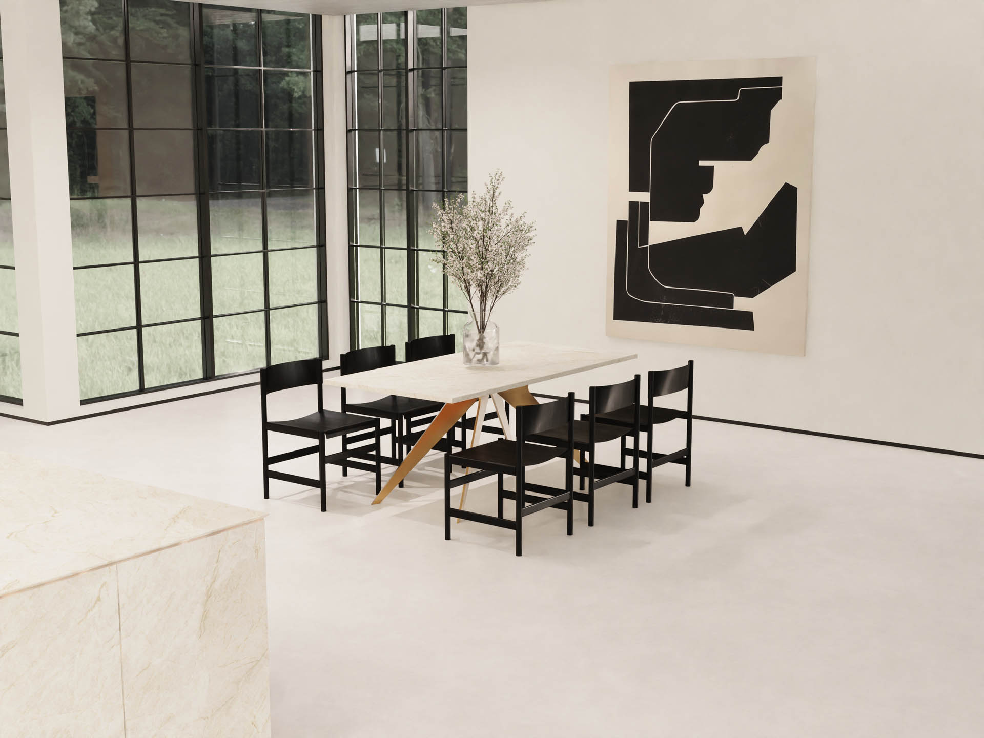 Stół Atlas cechuje się nowoczesną i minimalistyczną konstrukcją. Jego blat ma prostokątny kształt z gładką powierzchnią, co podkreśla jego elegancki i surowy charakter.