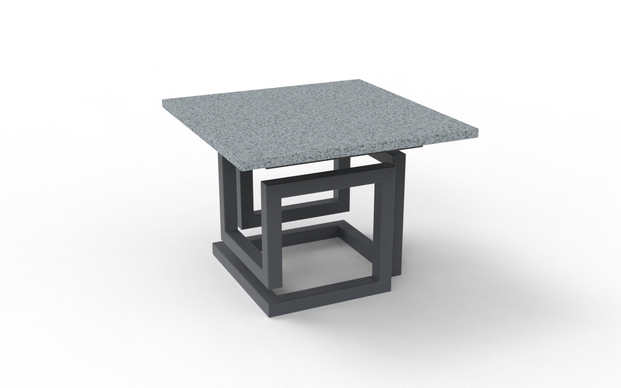 Solidna podstawa wykonana z metalu oraz blat, który może być z granitu, marmuru lub kwarcytu sprawiają, że stolik jest praktyczny i trwały.