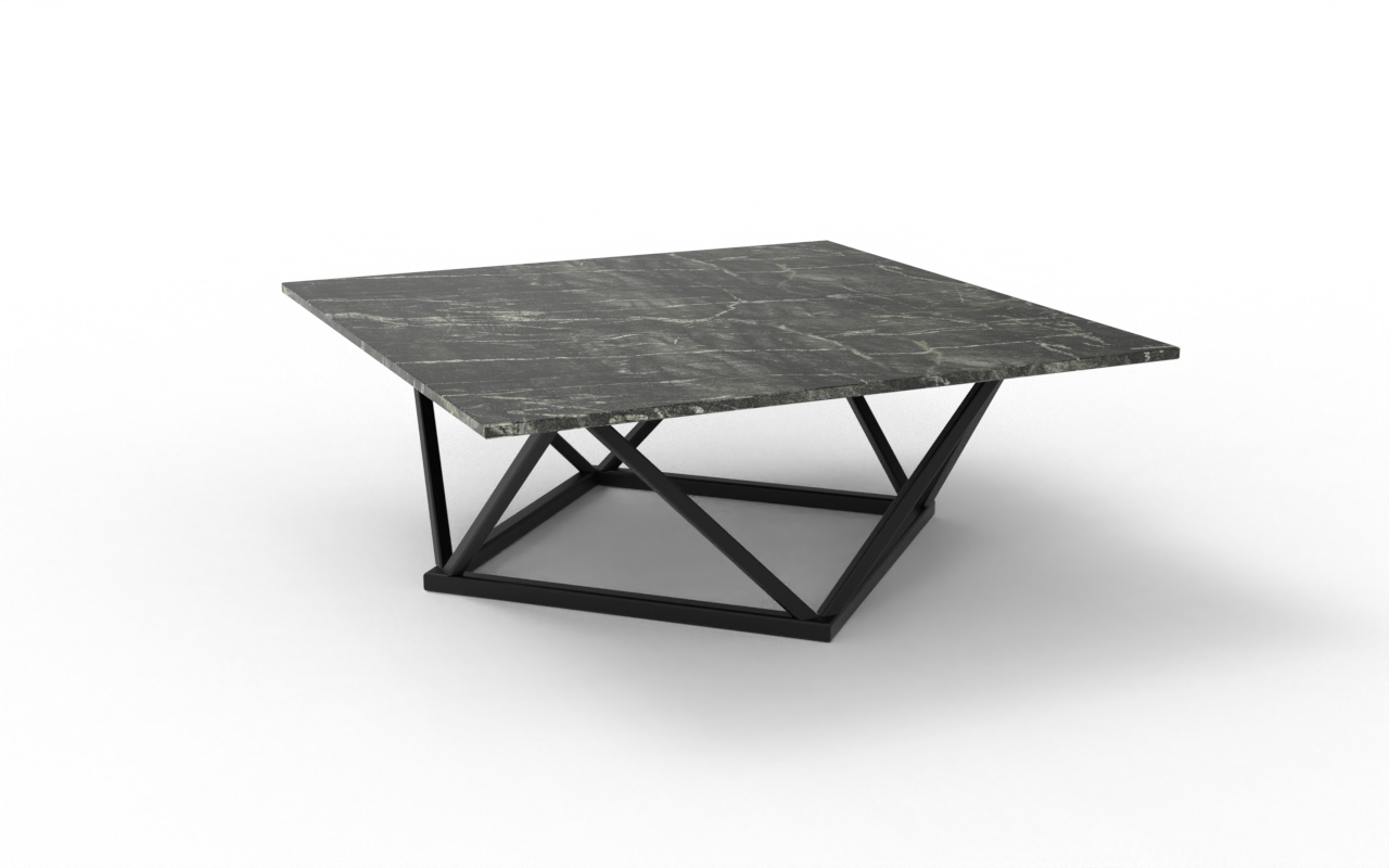 Stylowy stolik o nowoczesnym charakterze, który łączy elegancję kamienia z geometryczną formą metalowej podstawy. Kwadratowy blat wykonany z kamienia o subtelnym, naturalnym wzorze nadaje meblowi lekkości i wyjątkowej estetyki, a jednocześnie gwarantuje trwałość i odporność na codzienne użytkowanie.
