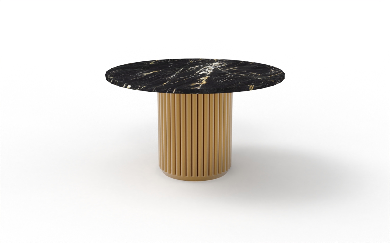 Stół Velar to połączenie nowoczesnego designu i ponadczasowej elegancji. Okrągły blat wykonany z kamienia nadaje mu szlachetności i trwałości, dzięki czemu świetnie sprawdzi się zarówno jako stół kawowy, jak i stół ogrodowy na tarasie czy w altanie. Solidna, cylindryczna podstawa o charakterystycznej ryflowanej strukturze nadaje całości wyjątkowego stylu, inspirowanego architekturą klasyczną i nowoczesnym wzornictwem.