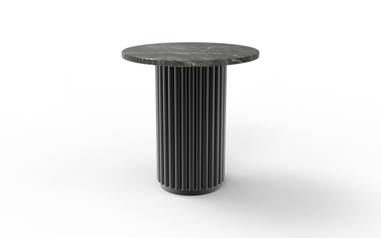 Stolik Saga to elegancki i funkcjonalny mebel, który idealnie sprawdzi się jako stolik pomocniczy w salonie, sypialni czy gabinecie. Okrągły blat osadzony został na stabilnej, cylindrycznej podstawie z pionowym ryflowaniem, co nadaje mu ponadczasowego charakteru inspirowanego klasyczną architekturą.